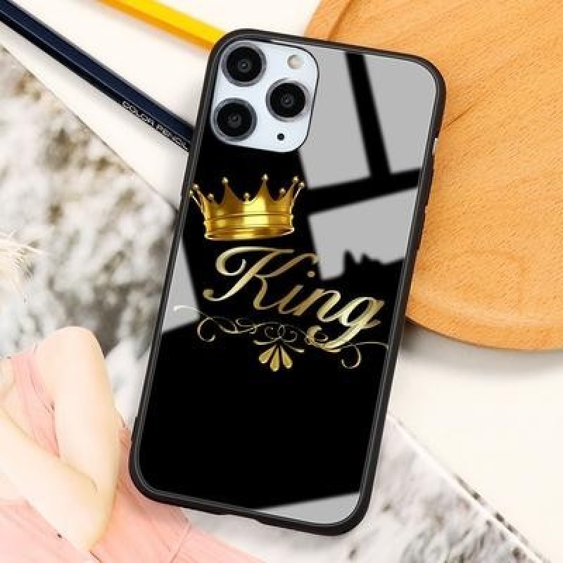 Пара Королева Король Корона Бриллиант Закаленное стекло Чехол для телефона для iPhone 13 12 11 SE 20